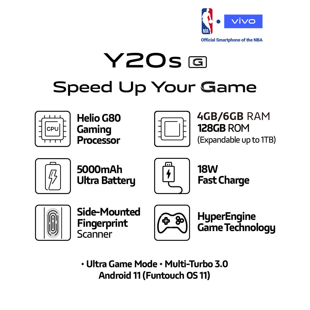 *Based on the test result by AnTuTu (8.5.0), compared with Y20, the overall performance of Y20s [G] has improved by 20% and the GPU performance by 98%. The data may vary depending on the memory specification.