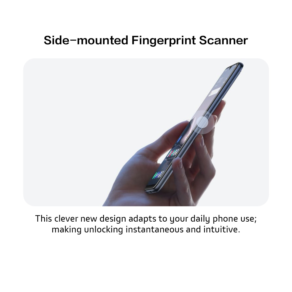 Unlock your phone in only 0.17s with Side-Mounted Fingerprint Scanner. This clever new design adapts to your daily phone use; making unlocking instantaneous and intuitive. Additionally, Face Wake technology provides yet another option to unlock your phone in a split second.